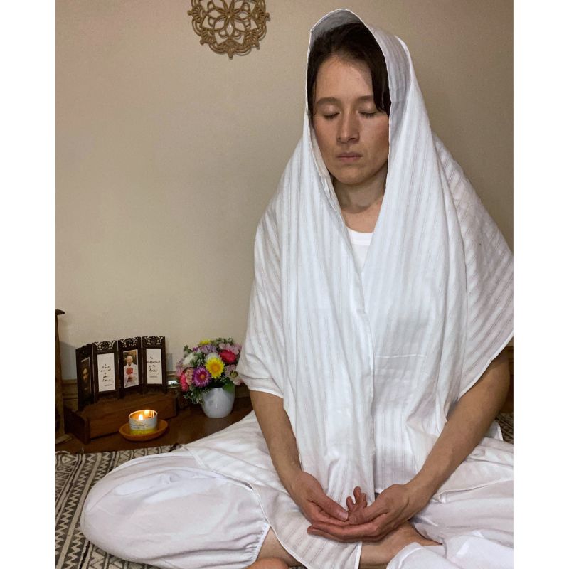 El turbante es un símbolo de devoción por tu práctica. Los rituales como cubrirse la cabeza y sentarse frente a un altar o espacio sagrado pueden ayudar a preparar el escenario para una práctica más profunda al señalar una transición del mundo físico al espiritual. Descubre que cuando te sientas frente a tu altar, con imágenes de tus gurús, enciendes de la vela y con ella el incienso, untas mis muñecas con aceites esenciales y cubres tu cabeza, estas preparando tu cuerpo y alma para entrar en un encuentro contigo, con alegría y reverencia!